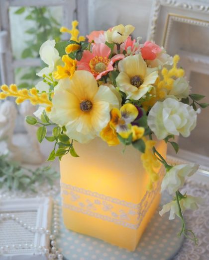 光と花のキャンドルアレンジ