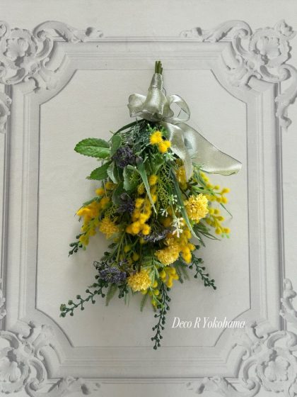 自然な流れを楽しむ「ミモザ・スワッグ」