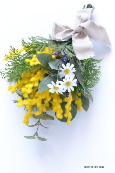 ミモザはそのままでも絵になる花材なので、初心者の方でも失敗が少なく、驚くほど本格的で洗練された仕上がりを楽しむことができます。